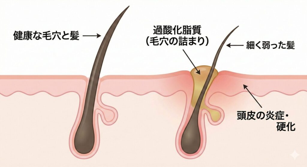 それは、頭皮にこびりついた「過酸化脂質」が原因かもしれません